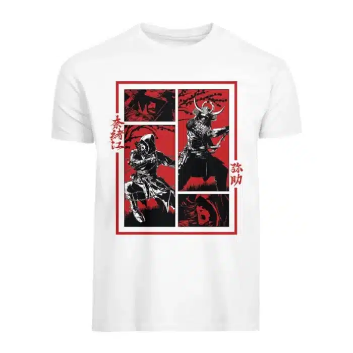 Moderna i upečatljiva majica inspirirana Assassins Creed svijetom donosi jedinstveni dizajn s japanskim motivima i likovima iz igre Shadows. Idealan izbor za fanove serijala koji žele kombinirati stil i ljubav prema gamingu.