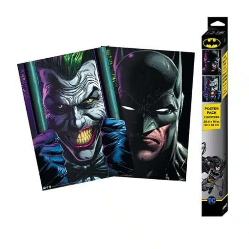 Ovaj set sadrži dva postera s motivima DC-a: jedan s prikazom Batmana i drugi s Jokerom. Posteri su tiskani na kvalitetnom papiru s jasnim i živopisnim detaljima, savršeni za izlaganje na zidu, uredu ili kao dio kolekcije fanova DC-a.