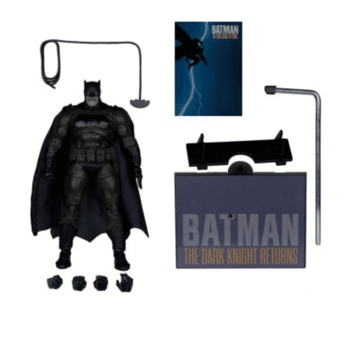 Ovaj model prikazuje lika Batman u verziji inspiriranoj naslovnicom stripa The Dark Knight Returns #1, koji potpisuje Frank Miller. Figurica dolazi u skali 7″ (~18 cm) i pripada liniji Cover Recreations unutar DC Multiverse serije.U kompletu je deluxe bazna ploča s pozadinom koja reproducira naslovnicu stripa, omogućujući izlaganje figure kao scene.