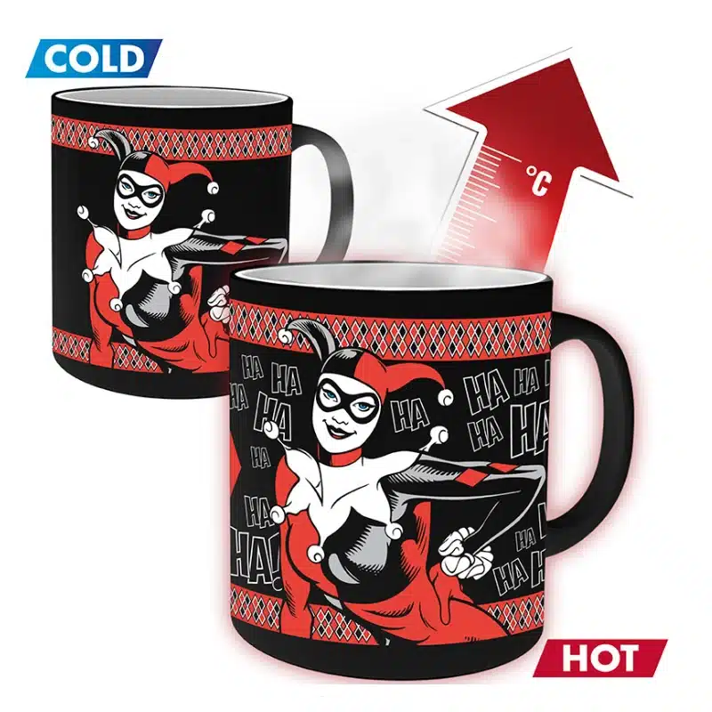 Kada je hladna, šalica prikazuje osnovni motiv Harley Quinn, a nakon što uliješ topli napitak, otkriva se dodatna grafika i skriveni detalji. Na taj način svaka kava, čaj ili kakao postaje mali show s iznenađenjem.