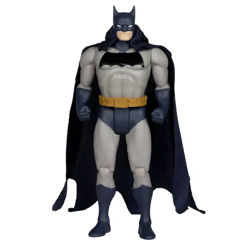 Akcijska figura Batmana visine 13 cm donosi klasičan dizajn inspiriran stripom The Dark Knight Returns. Figura je izrađena s pažnjom na detalje, prikazujući Batmana u prepoznatljivom sivom odijelu s žutim logotipom šišmiša. Ova figura je idealna za kolekcionare i obožavatelje Batmana svih uzrasta.