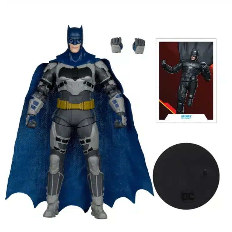 Akcijska figura Batman (Platinum Edition) visine 18 cm prikazuje Batmana u njegovom izgledu iz filma The Flash. Izrađena od visokokvalitetne PVC plastike, figura je pažljivo oslikana. Kako bi se istaknuli detalji odijela, logotipa šišmiša i drugih karakterističnih elemenata Batmana. Jedna od ključnih značajki ove figure je njezina artikulacija koja omogućava različite akcijske poze, čineći je idealnom za izlaganje ili rekreiranje scena iz filma.