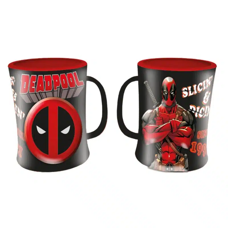 Dizajn šalice temelji se na prepoznatljivom Deadpool vizualnom stilu, s kontrastnim bojama i ilustracijama koje naglašavaju njegov sarkastičan i nekonvencionalan karakter. Grafika je jasna i izražajna, što ovu šalicu čini atraktivnim dodatkom kuhinji, uredu ili gaming prostoru.