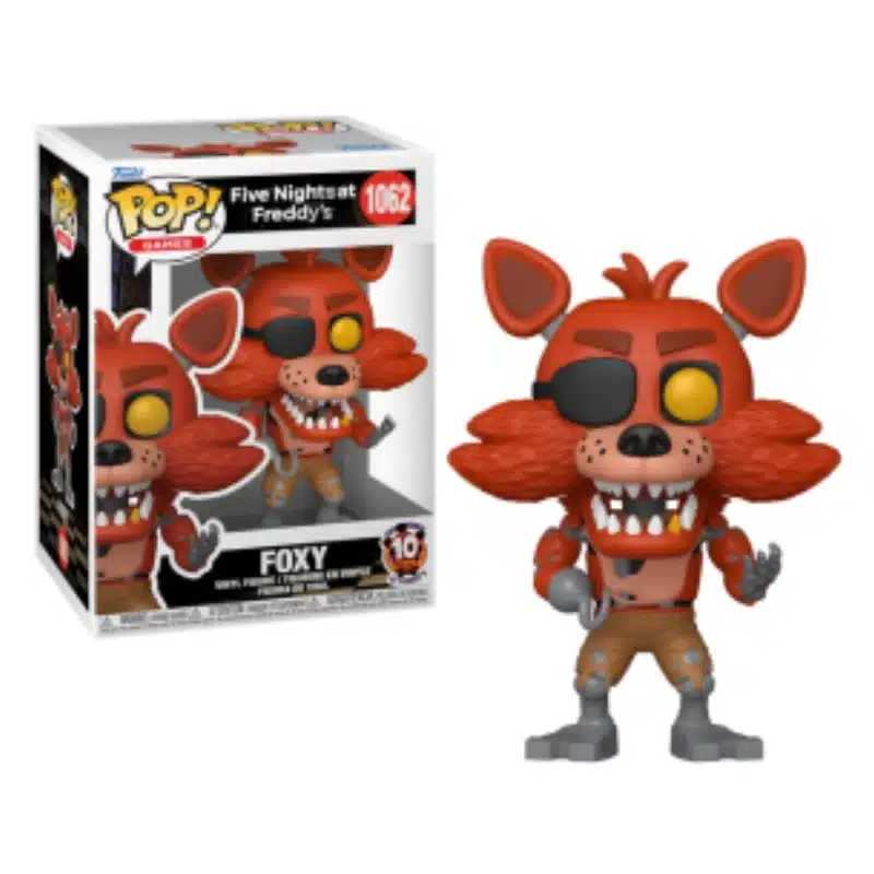 Foxy je prikazan u svom klasičnom izdanju, s kukom umjesto ruke, poderanim dijelovima tijela i prepoznatljivim piratskim izgledom. Funko POP stil s velikom glavom i pojednostavljenim proporcijama zadržava kolekcionarsku estetiku, dok istaknuti detalji jasno prenose njegovu jezivu pojavu iz igre.
