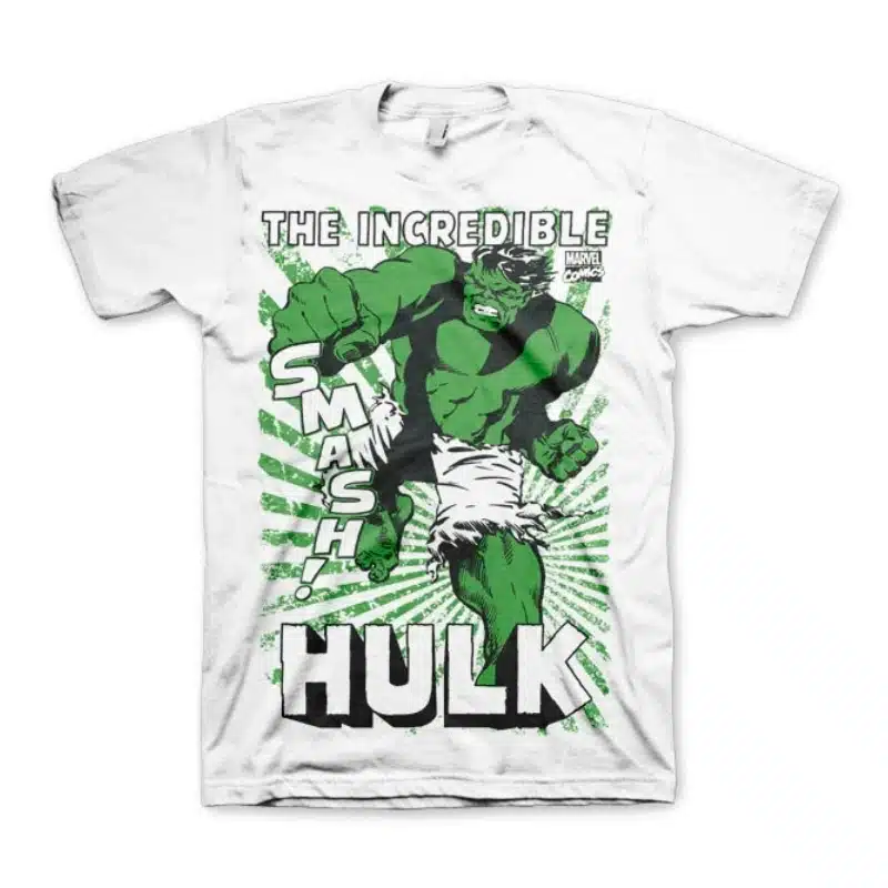 Majica inspirirana jednim od najjačih Marvel junaka – Hulkom – donosi energičan i upečatljiv dizajn koji savršeno prenosi njegovu snagu i bijes. Dinamična ilustracija uz natpis “The Incredible Hulk” i “SMASH!” čini ovu majicu pravim izborom za sve fanove akcije.