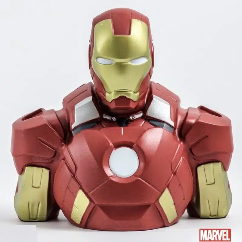 Iron Man kasica visoka je približno 20 cm i izrađena od visokokvalitetnog PVC materijala. Ova kasica prikazuje Iron Manov gornji dio odijela u obliku busta, s detaljima poput svjetleće ploče na prsima. Na stražnjoj strani nalazi se utor za umetanje novčića, dok se za vađenje novca koristi plastični čep na dnu. Idealna je za ljubitelje Marvela i kolekcionare, te može poslužiti i kao ukrasni predmet u prostoriji.