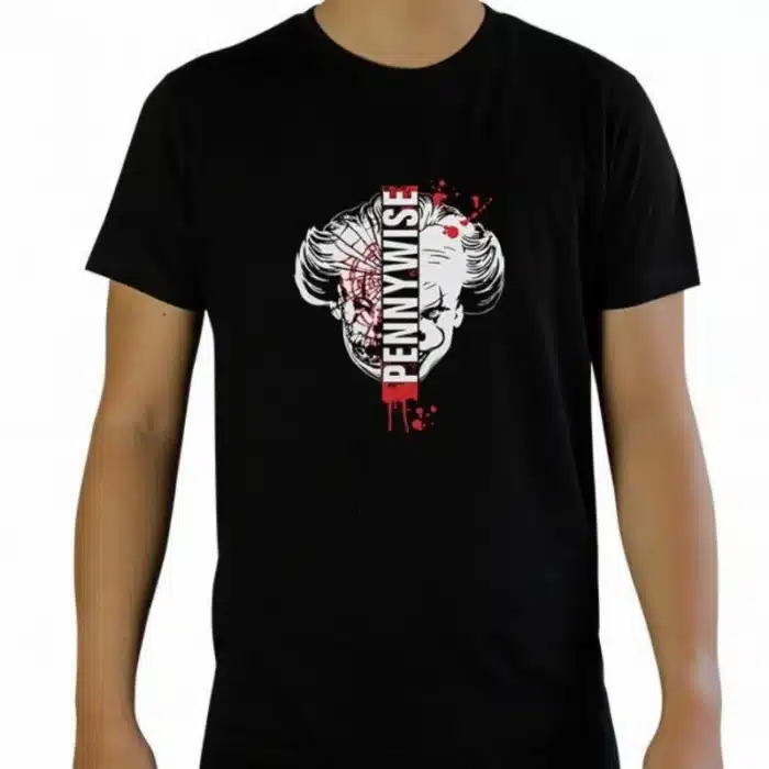 Istakni svoj stil uz IT Pennywise majicu kratkih rukava inspiriranu kultnim horor filmom. Ova crna majica donosi upečatljiv dizajn s podijeljenim prikazom zlokobnog klauna Pennywisea, stvarajući snažan i mračan vizualni dojam.