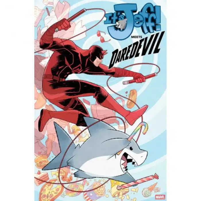 It’s Jeff! Meets Daredevil #1 je zabavan i lagan Marvel strip koji spaja popularnog simpatičnog lika Jeffa (Land Shark) s ozbiljnijim junakom Daredevilom, stvarajući jedinstvenu kombinaciju humora i akcije.