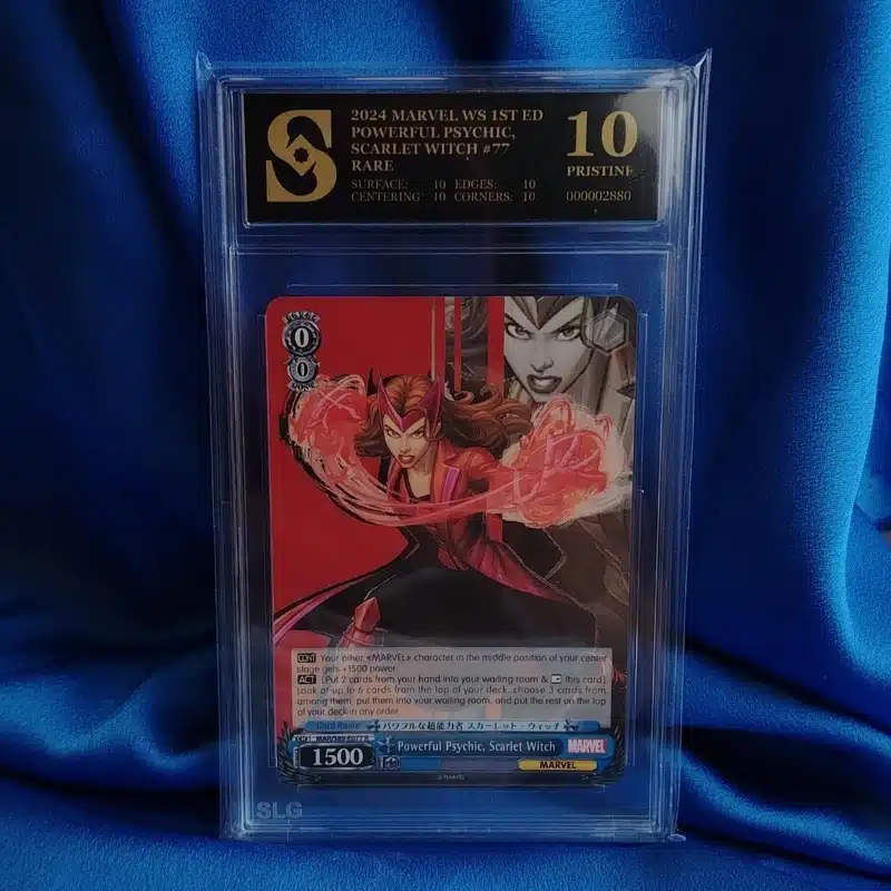Ova Marvel Scarlet Witch kolekcionarska karta #77 prikazuje Scarlet Witch (Wanda Maximoff), jednu od najmoćnijih i najpoznatijih junakinja Marvela. Karta je profesionalno ocijenjena (graded) od strane renomirane grading kuće i dolazi u originalnom zaštitnom kućištu, što jamči autentičnost i dugoročnu očuvanost.
