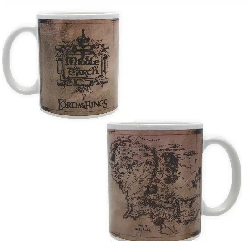 Ova šalica od 320 ml prikazuje detaljnu kartu Srednje Zemlje iz serije Lord of the Rings. Izrađena od kvalitetne keramike, idealna je za svakodnevno korištenje, ispijanje omiljenih napitaka ili kao kolekcionarski predmet za fanove trilogije.