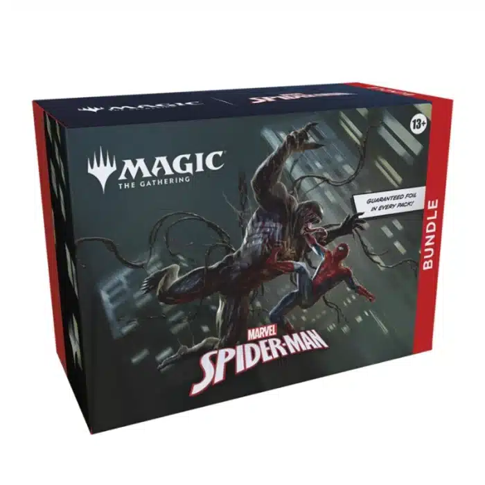 Magic: The Gathering Marvel’s Spider-Man Fat Pack Bundle box englesko izdanje je bundle ili tzv. Fat Pack proizvod iz Universes Beyond kolaboracije između Magic: The Gathering i Marvel’s Spider-Man franšize. Ovaj set dizajniran je kako bi igračima i kolekcionarima pružio dobar temelj kartica iz novog seta, dodatne booster pakete za igranje i atraktivne kartice koje se mogu koristiti za gradnju špilova ili kolekciju.