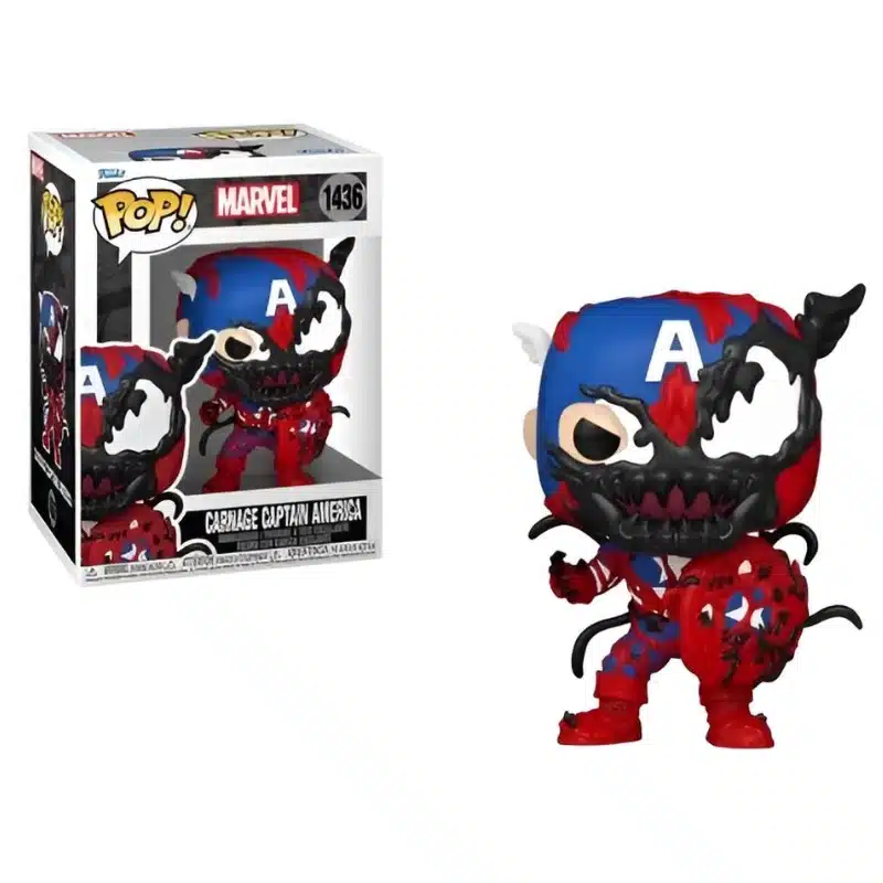 Funko POP! Carnageized Captain America donosi jedinstvenu kombinaciju Kapetana Amerike i mračnog simbionta Carnagea. Ova figura visine približno 9,8 cm prikazuje poznatog Marvel junaka u njegovom prepoznatljivom kostimu, isprepletenom kaotičnim i zastrašujućim detaljima simbiontske transformacije. Izrađena je od kvalitetnog vinila i dolazi u prozirnoj kutiji pogodnoj za izlaganje.