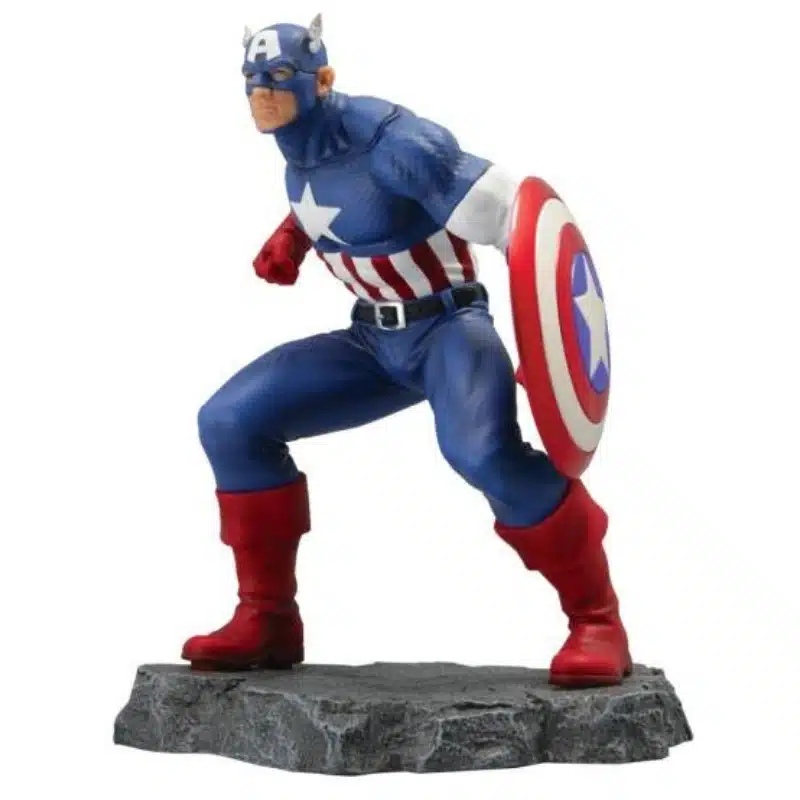 Ova autentična Marvel Captain America figura visine 12 cm, izrađena u detaljnoj 1:10 skali, inspirirana je naslovnicom stripa Captain America #100. Kapetan Amerika prikazan je u dinamičnoj pozi sa svojim legendarnim štitom, spreman za akciju i obranu pravde. Detalji kostima i boja vjerno odražavaju izgled lika iz stripova.