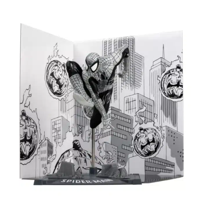 Ovaj model prikazuje Spider‑Mana u stilu “Line Art” izvedbe — područje crteža, bez pune koloracije. Koja reproducira dojam originalne ilustracije s naslovnice stripa Spider‑Man #6. Inspiriran je samom epizodom gdje se Spider‑Man bori s Hobgoblinom, i dolazi u 1:10 skali s podlogom (diorama/base) i pozadinskom scenom koja dodatno ističe lik.