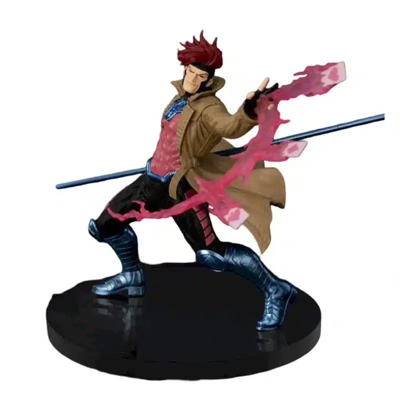 Marvel Gambit figura donosi iznimno dinamičan prikaz jednog od najkarizmatičnijih likova iz Marvel X-Men univerzuma. Gambit je prikazan u akcijskoj borbenoj pozi, s jasno izraženim kinetičkim energetskim efektom koji simbolizira njegove mutanske moći. Ova figura savršeno prenosi njegovu samouvjerenu osobnost, brzinu i kontrolu energije.
