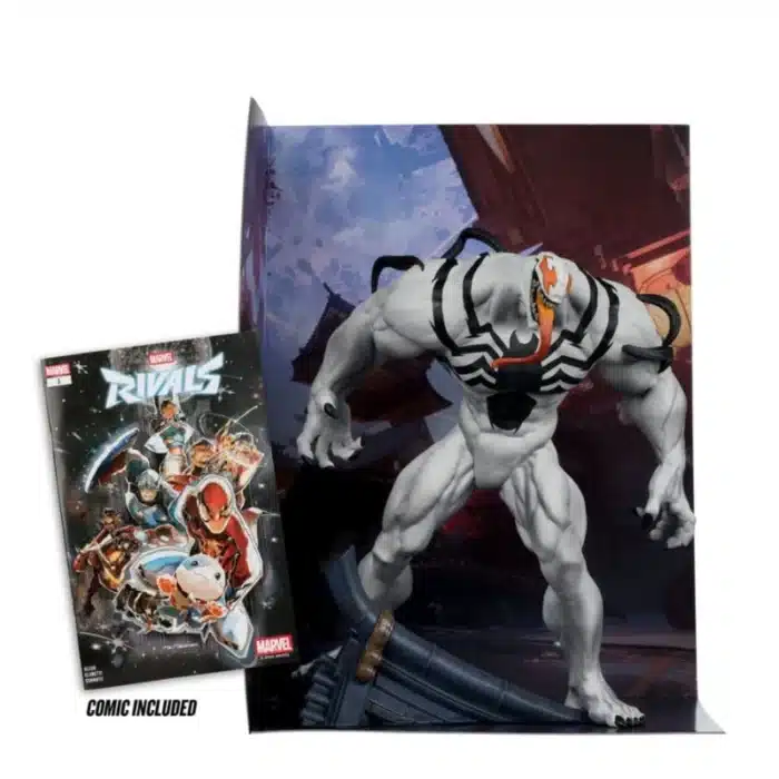 Kolekcionarska figura iz Marvel Rivals linije koja prikazuje Venoma u alternativnom (bijelom) symbiote dizajnu, uz priloženi strip.Figura prikazuje Venoma u masivnoj, agresivnoj pozi s naglašenom muskulaturom i karakterističnim symbiote detaljima. U pakiranju se nalazi i strip izdanje Marvel Rivals, čime proizvod kombinira figuricu i narativni sadržaj.