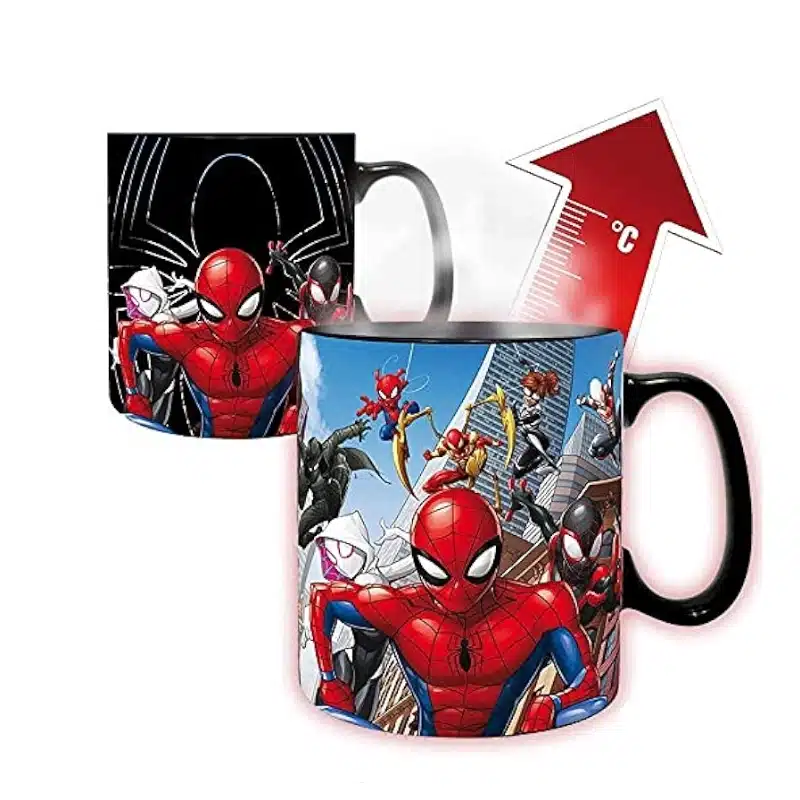 Ova posebna šalica od 460 ml namijenjena je svim fanovima Spider-Mana. Izrađena od kvalitetne keramike, šalica mijenja izgled kada se u nju ulije topli napitak – otkrivajući dodatne detalje s motivima Spider-Mana i gradskih vizura.