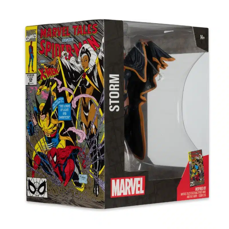 Marvel Storm figura 18cm prikazuje popularnu mutanticu iz X-Men serijala – Storm. Figura je inspirirana njenim kultnim izgledom u stripovima, s naglaskom na elegantni kostim, bijelu kosu i moć kontrole vremena. Ova detaljna replika savršeno dočarava njen moćan stav i herojski karakter, što je čini idealnom za kolekcionare i ljubitelje Marvel likova.