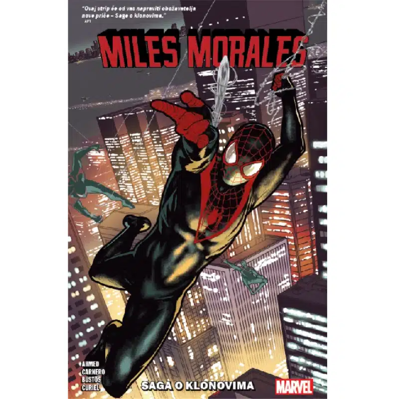 Ovaj uzbudljivi strip (Miles Morales 5: Saga o klonovima), objavljen 2024. godine u hrvatskom jeziku, donosi se u elegantnom izdanju s tvrdom koricom. Scenarij potpisuje Saladin Ahmed, dok su ilustracije djelo talentiranih Carmen Carnero, Davida Curiel i Natacha Bustosa