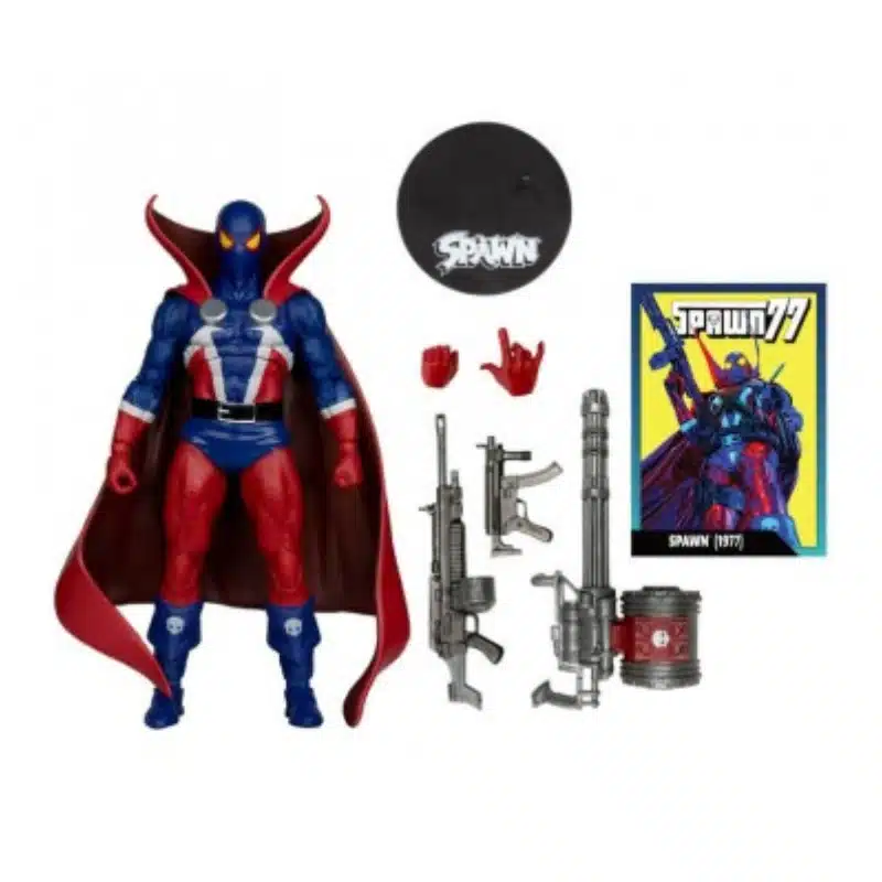 Ova figura prikazuje Spawna u specijalnoj „1977” izvedbi – modernom hommageu klasičnom strip‑izdanju. Visine je približno 18 cm i dolazi s više dodataka: uključuje repro‑strip (Spawn #1 tradicionalno), dodatne ruke za različite poze, nož ili oružje, bazu za izlaganje te tematiziranu kutiju.