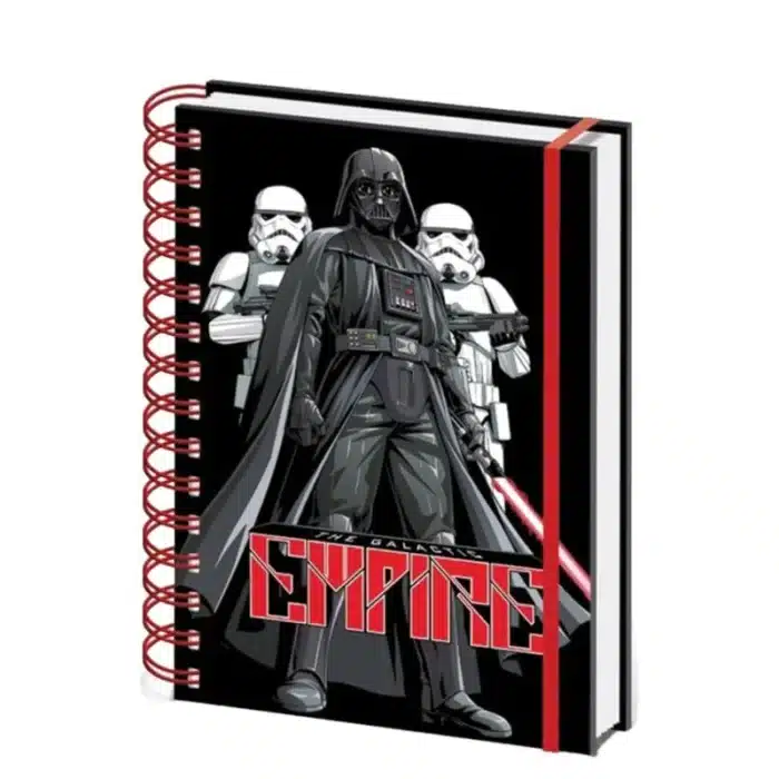 Star Wars Dark Side Bilježnica A5 formata s upečatljivim dizajnom koji prikazuje Darth Vadera i Stormtroopere u moćnoj i prepoznatljivoj kompoziciji. Tamni tonovi u kombinaciji s crvenim detaljima stvaraju snažan vizualni dojam koji će se istaknuti u svakoj kolekciji.