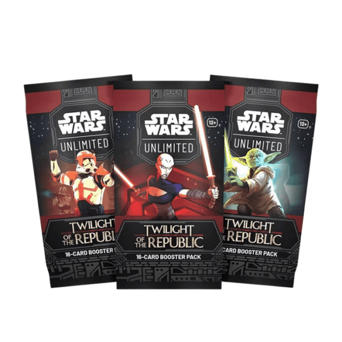 Star Wars Unlimited Twilight of the Republic Booster paketić englesko je izdanje pojedinačnog paketa karata iz trećeg seta Star Wars: Unlimited kartaške igre. Ovaj booster paketić omogućuje igračima i kolekcionarima da prošire svoju zbirku karata s novim jedinicama, likovima i taktikama inspiriranim Clone Wars konfliktima.